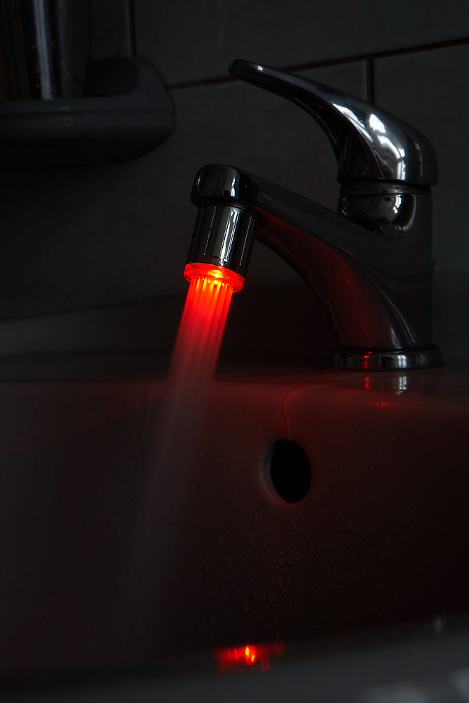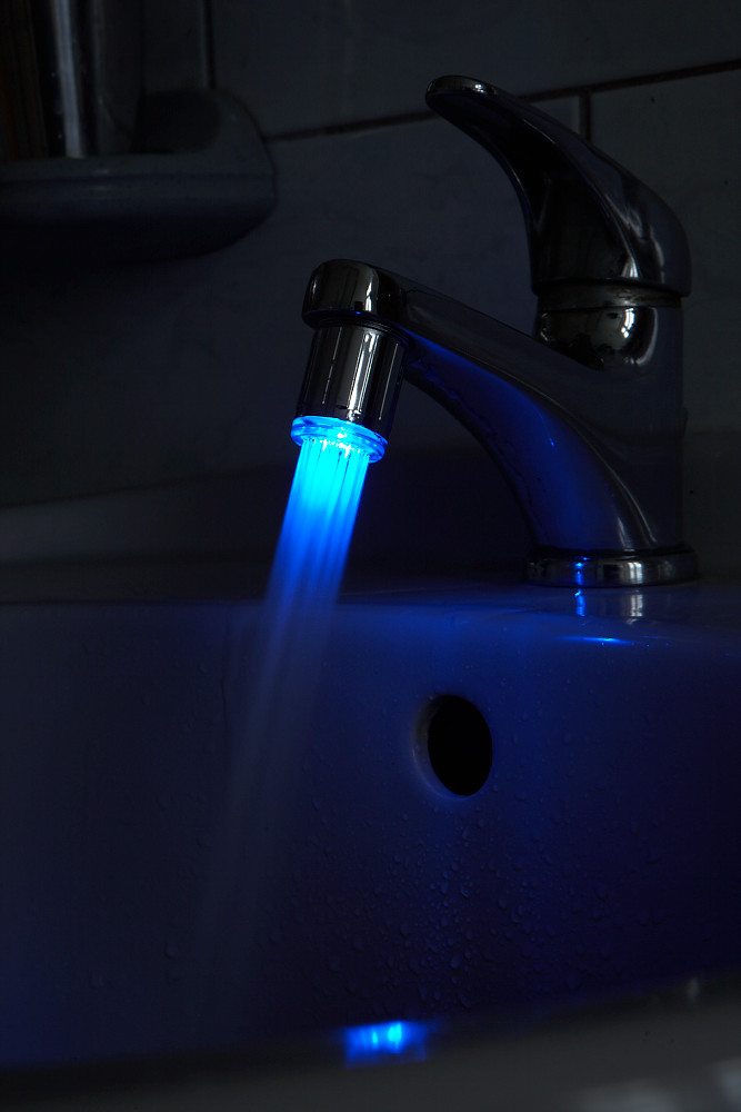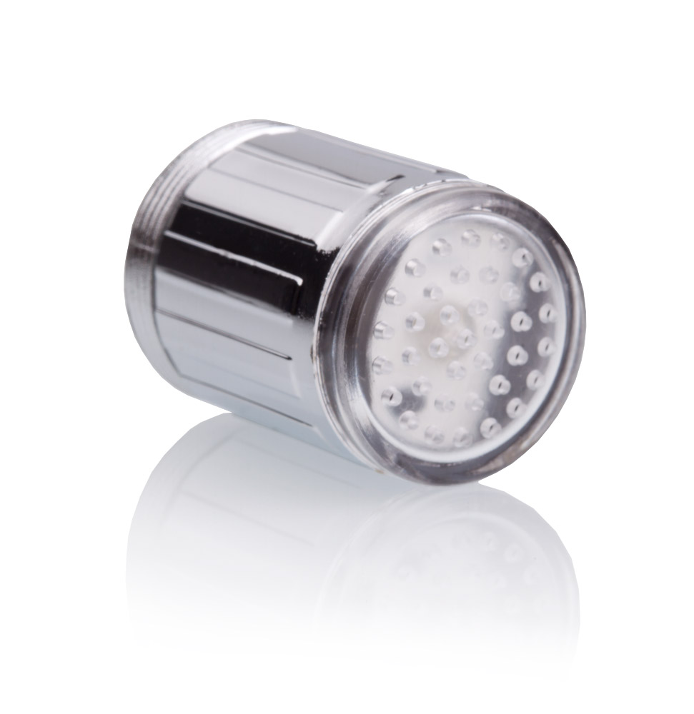 Nástavec na kohoutek, který Vám za pomoci svitu LED diod obarví vodu podle její teploty. Budete včas znát teplotu vody a zamezíte tak opaření rukou.