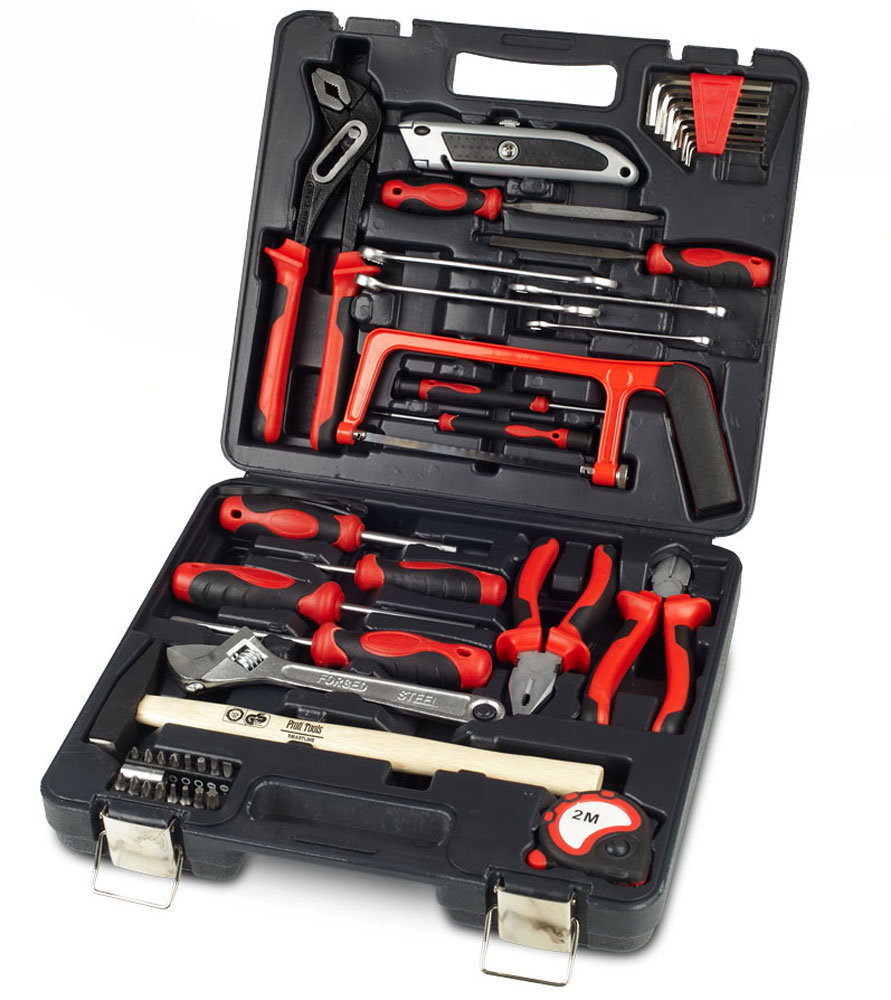 Sada nářadí 45 ks - přehledné uspořádání v praktickém kufru: